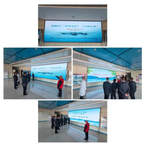 機關(guān)黨支部黨員志愿者帶領(lǐng)下,與會代表在忻州市節(jié)水教育基地展板前認真學(xué)習(xí)了習(xí)近平總書記關(guān)于保護水資源的系列講話精神。在忻州市節(jié)水教育基地忻州市水資源電子沙盤前了解忻州市水資源現(xiàn)狀,聽取了志愿者講解“節(jié)水優(yōu)先、空間均衡、系統(tǒng)治理、兩手發(fā)力”的治水思路和全省“三縱九橫、八河連通”水網(wǎng)體系建設(shè)成果。在水質(zhì)檢測大樓門廳大顯示屏前聽取了志愿者講解2024年“世界水日?中國水周”宣傳標語深刻內(nèi)涵和節(jié)水常識。