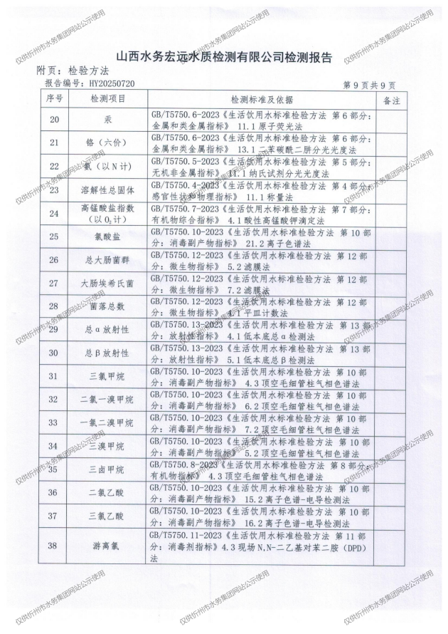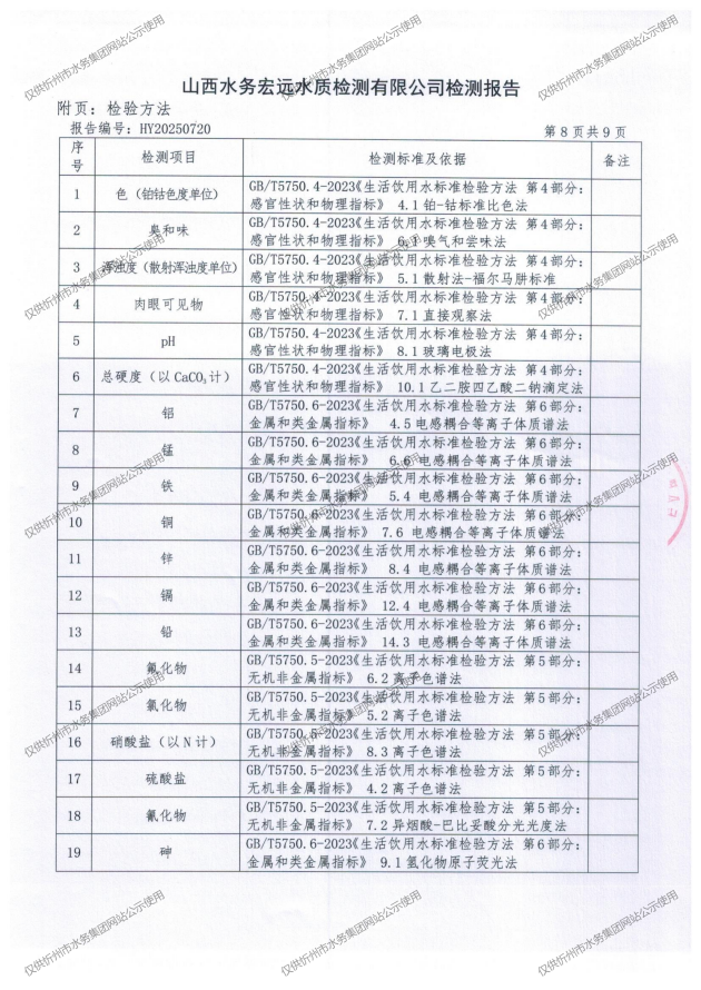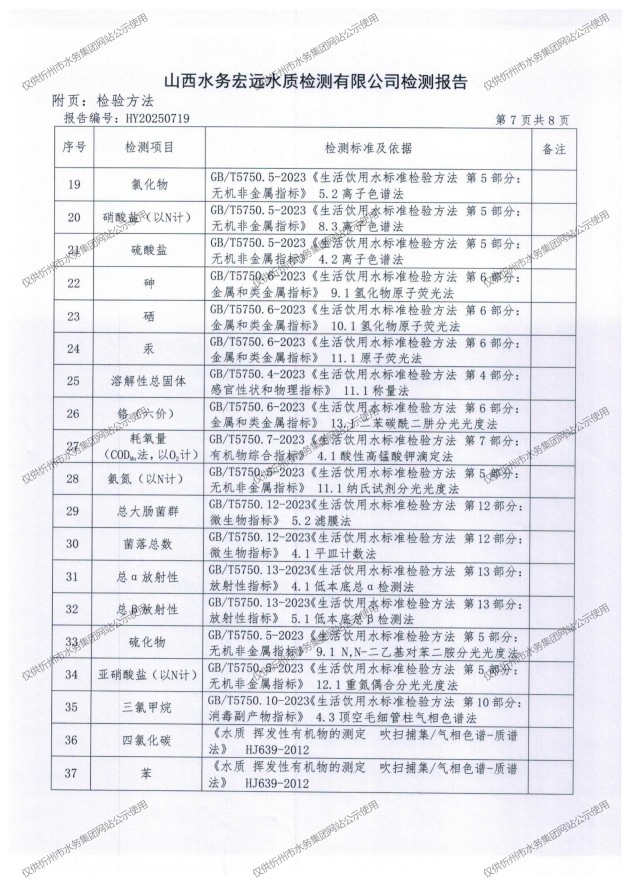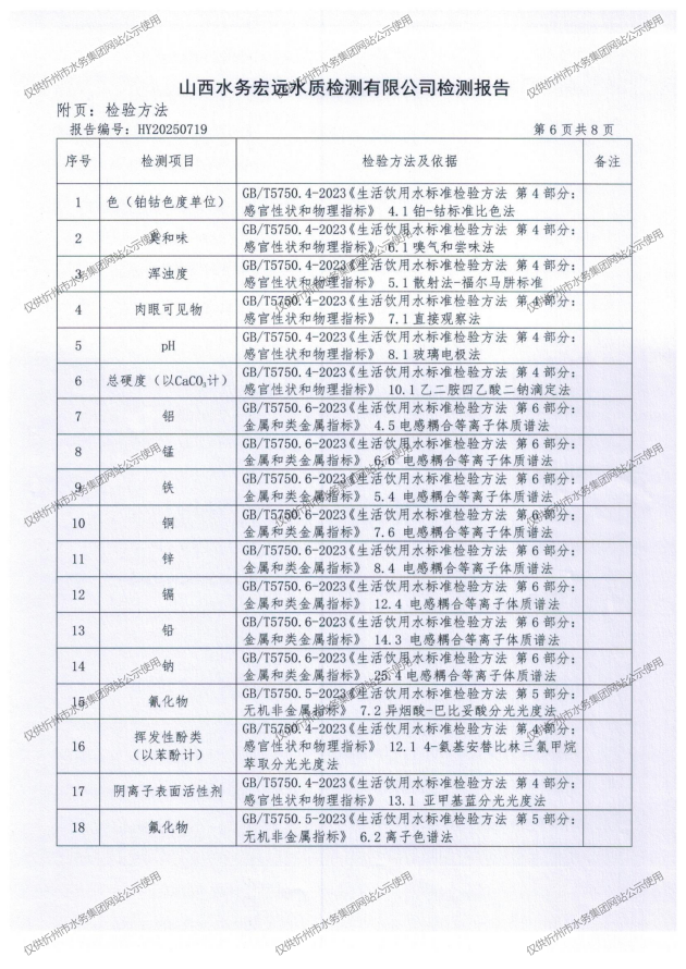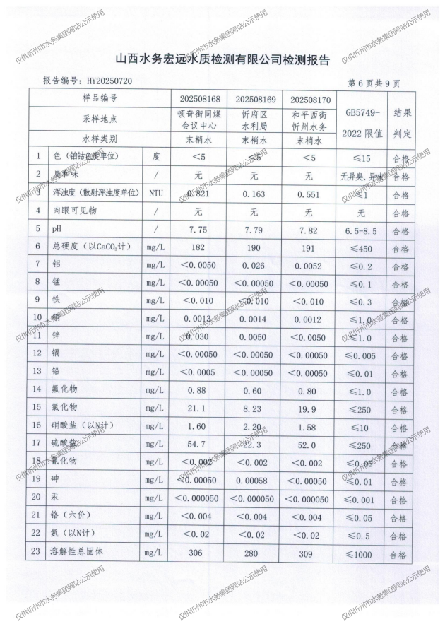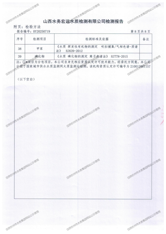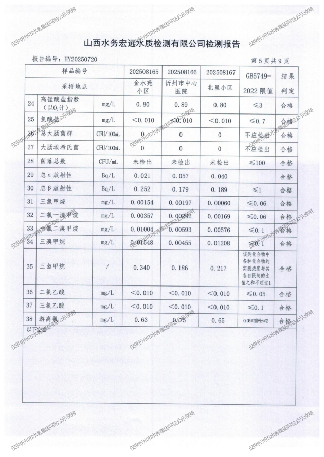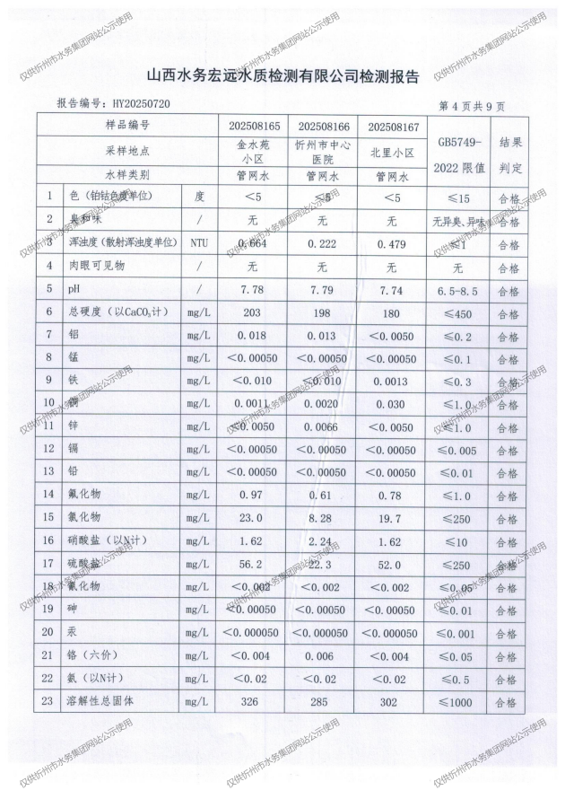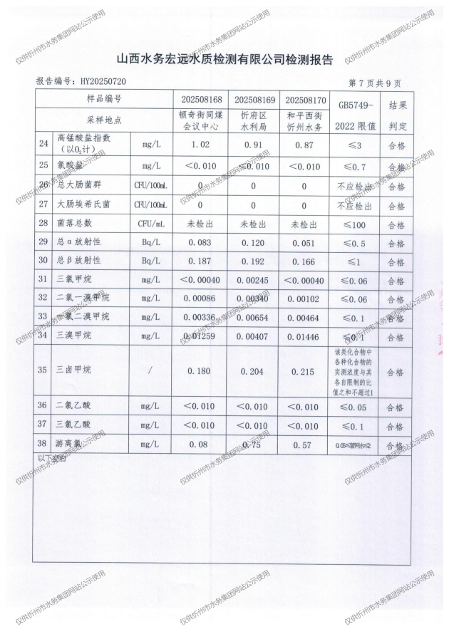 忻州城區(qū)公共供水水源水、出廠(chǎng)水、管網(wǎng)水、管網(wǎng)末梢水2025年8月份水質(zhì)信息公示