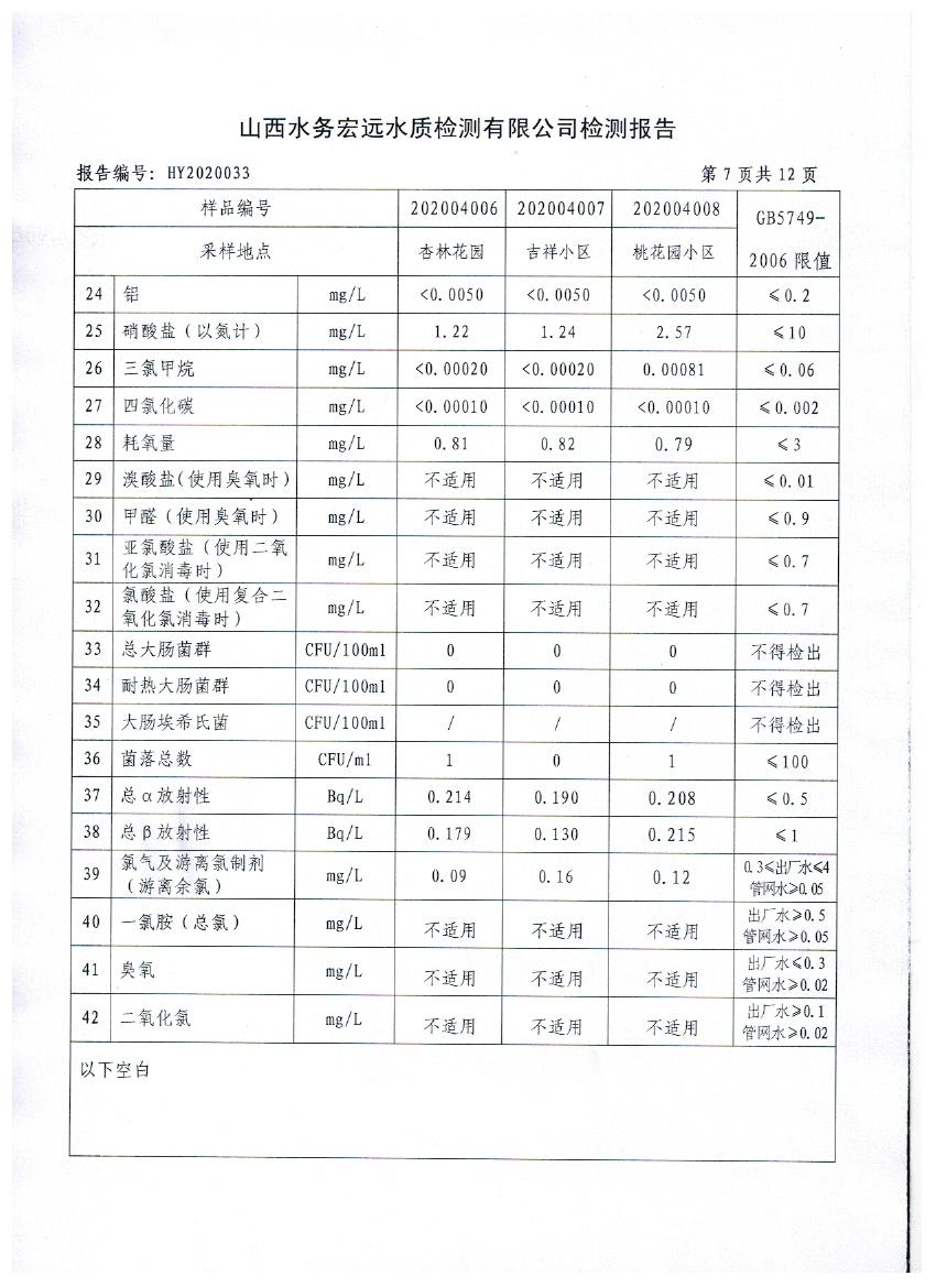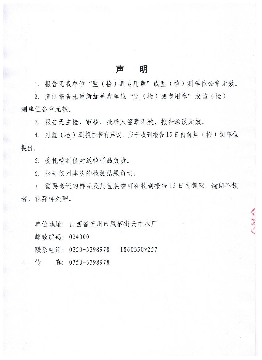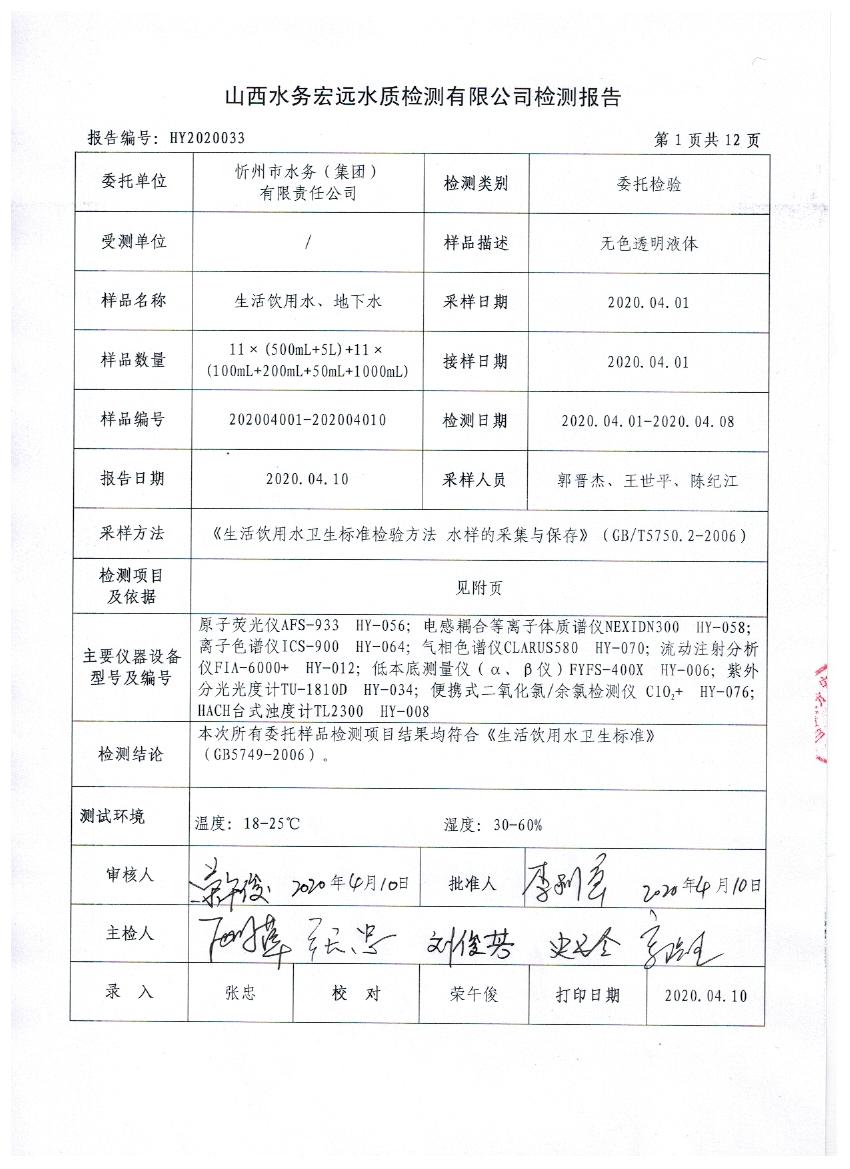 忻州城區(qū)公共供水水源水、出廠水、管網(wǎng)水、管網(wǎng)末梢水2020年4月份水質信息公示