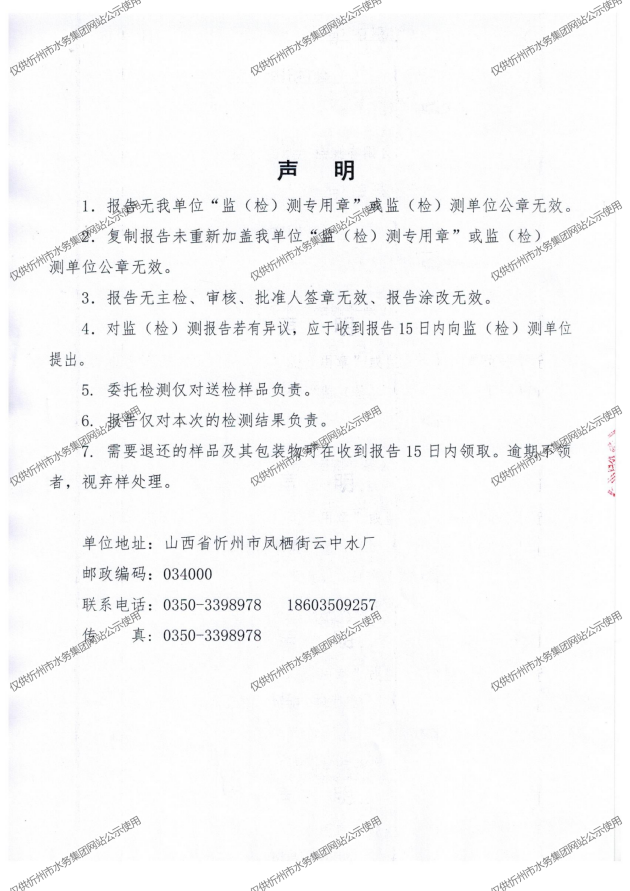 忻州城區(qū)公共供水水源水、出廠水、管網(wǎng)水、管網(wǎng)末梢水2021年9月份水質(zhì)信息公示